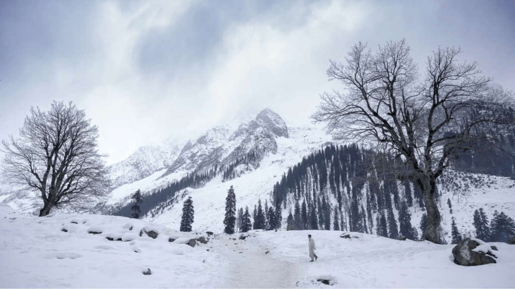 During snowfall in Jammu and Kashmir, time seems to pause, and travel becomes less about where you are headed and more about noticing how snow in Kashmir changes everything around you.
